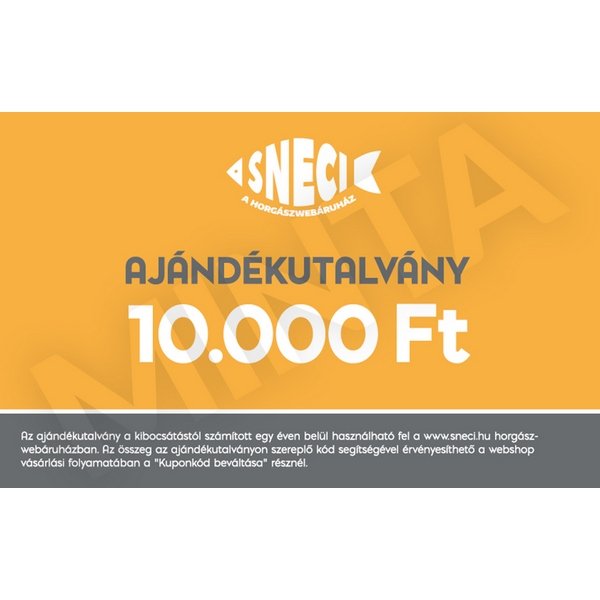 10 000 Ft értékű ajándékutalványNem tudod, mit ajándékozz egy-egy különleges alkalomra? A Sneci ajándékutalványával nem nyúlhatsz mellé! Az 5000-10000-20000-50000 Ft-os értékben kapható ajándékutalványok beválthatóak személyesen vagy a webshopban egyaránt, a vásárlástól számított egy évig. Ne gondolkodj tovább, ha hasznos ajándékot szeretnél!…