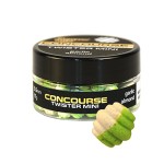 Benzár Concourse Twister Mini A 2023-as év sikerterméke, a Concourse Twister csali, talán nem túlzás kijelenteni, hogy több ezer horgásztársunk kedvencévé vált. Nem volt kérdés tehát számunkra, hogy a 2024-es évre bővítjük a Twister családot és megalkotjuk a Concourse Twister Mini csalikat. A Concourse Twister Minik, hasonlóan a nagytestvérükhöz, szimmetrikus, körkörös alakjuknak köszönhetően olyan formavilágot jelenítenek meg, amely abszolút ismeretlen a halak számára és, amely megannyi variációs lehetőséget rejt. Az újdonság varázsa pedig, tudjuk jól, hogy a kapások számának drasztikus megemelkedésével jár! A csalik gyári állapotukban 5,5 mm hosszúak és kétszínű kivitelben készülnek nagyon erős, fogós, kedvelt aromákban, melyek a csoki-narancs, a faeper, a mangó, a halliszt, a sajt-vajsav, az eper-tintahal, a fokhagyma-mandula és a krill. Ezek az aprócska csalik kicsi méretük és hihetetlenül intenzív aromájuk mellett rendkívül gyorsan is oldódnak, így tényleg a piac egyik legattraktívabb csalijai! Kifejezetten a nehéz körülményekhez fejlesztettük őket, így érdemes bevetni a kiválasztott ízűt a finom, téli pecák során vagy a legkiélezettebb versenyszituációkban. Nem fognak csalódást okozni! Mivel e wafter jellegű csalik aprócskák, ezekkel meg lehet fogni az összes halat! A pontyok mellett nem vetik meg a dévérek, kárászok sem a Mini Twistereket, így ha mozgalmas horgászatra vágyunk, nem kérdés, hogy mi kerüljön a tüskére! Apropó, tüske. A csalik mérete mindenképpen vékony, slim tüske használatát kívánja meg, emellett arra is érdemes figyelni, hogy ne egy indokolatlanul nagy „kampó” alatt kínáljuk fel őket. A finom method horgászat fegyverei ezek a csalik, melyekkel a legrangosabb versenyeken is eredményes lehet bárki!