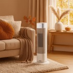 - Design: Elegáns, fehér oszlopformájú készülékház