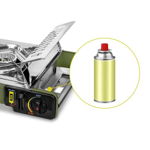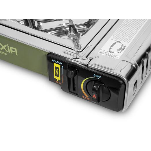 Erőteljes és stabil gázfőző, 2000 W teljesítménnyel, amely lehetővé teszi, hogy bárhol a természetben finom ételeket készítsen – ugyanolyan kényelmesen, mint otthon. Ez egy kivételesen stabil modell, amely négy lábra épül, így megbízhatóan használható akár asztalon, akár a földre helyezve. A strapabíró, nagy méretű rácsnak köszönhetően bátran főzhet nagyobb edényekkel vagy serpenyőkkel is. A magas hőmérséklet okozta elhasználódás megelőzése érdekében a rács és a főzőtest is rozsdamentes acélból készült, amely ráadásul rendkívül könnyen tisztítható. A rács kivágásai megbízhatóan megakadályozzák, hogy az edények elcsússzanak keverés közben. A főző CP250 típusú, 400 ml-es propán-bután gázpatronnal működik. Kétfokozatú biztonsági rendszerrel van ellátva, amely maximális biztonságot nyújt használat közben. A láng begyújtásához először rögzíteni kell a patront a főző elején található karral. Ez jelentősen csökkenti a véletlen gázszivárgás vagy automatikus kiengedés kockázatát. A maximális használati kényelem érdekében a Delphin INOXIA forgó szabályozóval rendelkezik, amely lehetővé teszi a gázáramlás precíz beállítását. A beépített piezo gyújtásnak köszönhetően elfelejtheti a gyufát és az öngyújtót – egyszerűen fordítsa a szabályozót maximum állásba, és a láng automatikusan meggyullad. A főző praktikus műanyag hordtáskában érkezik, fogantyúval az egyszerű szállításhoz. Kompakt kialakításának köszönhetően könnyen tárolható, és mindig készen áll a következő kalandra. Műszaki adatok: Teljesítmény: 2000 W Patron típusa: CP250 (400 ml) Üzemanyag: Propán-bután Gyújtás: Piezoelektromos Főző súlya: 1375 g Méret: 34 × 26 × 8 cm Szállítási méret: 36 × 30 × 12 cm
