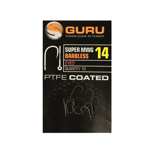 Guru Super MWG horog A rendkívül népszerű MWG horog szakáll nélküli, prémium változata. A PTFE bevonatnak köszönhetően rendkívül erős, éles heggyel és matt színnel rendelkezik. A túlméretezett fülnek köszönhetően vastagabb zsinórokkal is gond nélkül tudjuk megkötni. Formájának, kialakításának köszönhetően alkalmas a legtöbb horgászmódszerre legyen szó wagglerezésről, feederbotos horgászatról vagy akár rakózásról.