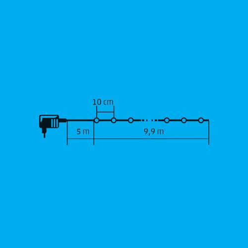 Szeretne egy ünnepi világítást, amely egyaránt kiszolgálja otthona belső és külső tereit? A LED 100/A a tökéletes választás azoknak, akik egy univerzális világítási megoldást keresnek. A termék 100 borostyán színű, állófényű LED-del rendelkezik, melyek ragyogó, meleg hangulatot teremtenek. A zöld vezeték láthatatlanul olvad bele a növényzetbe vagy díszítésbe, így a LED-ek előtérbe kerülnek. Az egyik legpraktikusabb jellemzője a 6 óra bekapcsolt és 18 óra kikapcsolt állapotú ismétlődő időzítés, melynek használatával nem kell naponta foglalkoznia a be- és kikapcsolással. Ráadásul a kültéri IP44-es adapternek köszönhetően az időjárás viszontagságai ellen is védett. Engedje meg, hogy az LED 100/A elvarázsolja otthonát, és élvezze a meleg, borostyánfényű ragyogást minden napszakban!