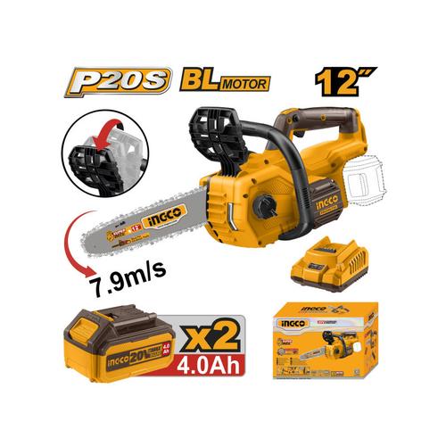 Az INGCO CGSLI401682 egy kompakt, mégis erőteljes láncfűrész, amelyet fák, fatörzsek, gerendák és ágak vágására terveztek. A szénkefementes motor nagyobb hatékonyságot és hosszabb üzemidőt biztosít, míg a szerszámmentes láncfeszítés és a vezetőlemez-rögzítő gomb gyors beállítást tesz lehetővé. A láncfék-védelem és az automatikus láncolajozás gondoskodik a biztonságról és a tartósságról. A szett tartalmazza a 2×4.0 Ah akkumulátort és a gyorstöltőt, így azonnal munkára kész.>
