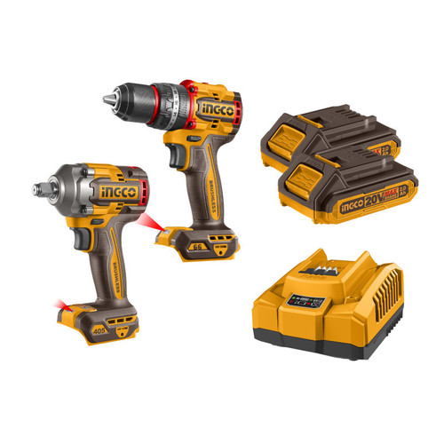 INGCO Akkus erőcsomag 20 V Ütvefúró-csavarozó 66 Nm+Ütvecsavarozó 1/2″ 405 Nm (2 db akku + töltő)