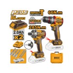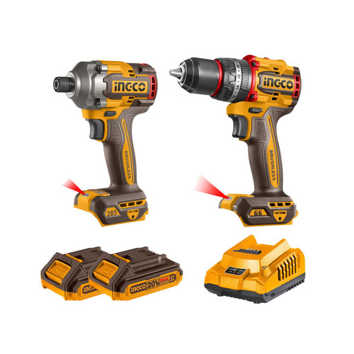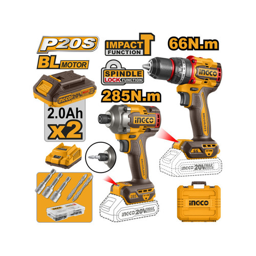INGCO Akkus erőcsomag 20 V Ütvefúró-csavarozó 66 Nm+Ütvecsavarozó 1/4″ 285 Nm (2 db akku + töltő)