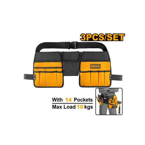 INGCO Szög és szerszámtartó övtáska 14 zsebes Állítható deréköv, vékony vagy erős derékhoz is megfelelőOxford anyagból készült, kopásálló és kényelmes, erős és tartós Maximális terhelhetőség: 10 kgZsebek mérete: 2 db 260 x 230 mm 1 db 150 x 130 mmÁllítható szíj: 920 – 1270 mm14 db zseb2 db kalapács tartó Szállítási terjedelem: 1 db övtáska, papírkártya csomagolás