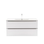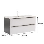 Vario Clam 100 alsó szekrény mosdóvalA Vario Clam 100 alsó szekrény mosdóval ideális választás a modern fürdőszobákba, amely ötvözi az eleganciát és a funkcionalitást!A Vario Clam 100 komplett fürdőszobabútor egy stílusos és praktikus választás modern fürdőszobához. Kompakt méretei ideálisak kisebb és közepes méretű fürdőszobákba is, és a fém fogantyú profil patinás hatást, az antracit-fehér színű dizájn elegáns megjelenést kölcsönöz a térnek. A csillapítós fiókzáródás és a felfüggesztett kivitel a kényelmet és könnyű tisztántartást szolgálja, míg a minőségi anyagok hosszú élettartamot biztosítanak.JellemzőkAdatokSzélesség100 cmMagasság52 cmMélység46 cmSzínantracit korpusz, fehér frontKivitelFelfüggesztettAnyagKiváló minőségű bútorlapFiókzáródásCsillapítós fiókzáródásSzállításLapraszerelveKiegészítőkflat design kerámia mosdóAjánlásLuxx LED lámpa (nem tartalmazza) A Vario Clam 100 alsó szekrény mosdóval a legjobb választás Kifinomult színvilág: Az antracit korpusz és az fehér front kombinációja elegáns és időtálló megjelenést kölcsönöz a bútornak.Kényelmes fiókzáródás: A csillapítós fiókzáródás segít csendben és könnyedén nyitni és zárni a fiókokat. Ez a funkció nemcsak kényelmes, hanem hosszú távon is megőrzi a bútor épségét.Egyszerű telepítés: A lapraszerelt bútor könnyedén telepíthető, így időt és energiát takaríthat meg a fürdőszobakialakítás során.Helytakarékos, felfüggesztett kivitel: A felfüggesztett kivitel lehetővé teszi a bútor könnyű tisztántartását. A padlótér szabadon marad, így ez tágasabb és rendezettebb fürdőszobát eredményez.Minőségi anyagokból készült: A bútor kiváló minőségű bútorlapból készült, ami rendkívül tartós és ellenálló a mindennapi használat során. A minőségi anyagok hosszú élettartamot biztosítanak.Elegáns és praktikus mosdó: A bútor flat design kerámia mosdóval érkezik, amely egy medencés kivitelű. Modern, esztétikus és könnyen tisztítható.Kerámia slim mosdóAz elegancia és a minimalizmus jellemzi, amelyek tökéletesen illeszkednek a modern fürdőszobai környezetbe. A slim kialakítás vékony és finom vonalakat alkot, ami tisztaságot és stílust sugall. A kerámia anyaga pedig tartós és könnyen tisztítható, így hosszú élettartammal rendelkezik. Termékjavaslat a bútorhozA Luxx LED lámpa 600 mm modern és letisztult megjelenéssel, 9 watt teljesítménnyel és 600 lumen fényerővel ideális választás a fürdőszoba megvilágításához. A lámpa könnyen felrögzíthető falra, tükörre vagy bútorra, és kiváló minőségű műanyagból készült króm bevonattal. Az IP44 védelmi besorolásnak köszönhetően tartós és ellenálló a fürdőszobai környezetben, és 20,000 óra élettartammal rendelkezik.Fontos: hogy az ajánlat a csapot és a lámpát nem tartalmazza!