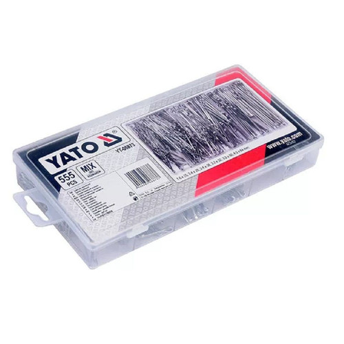 555db acéllemez biztonsági szeg készlet alkatrészek rögzítésére, különbözõ méretekben. A sasszegek kis, de annál fontosabb elemei a szerkezeteknek, amelyek biztonságosan rögzítik a különbözõ alkatrészeket. A YT-06873 készlet lehetõvé teszi, hogy mindig a megfelelõ méretû sasszeg álljon rendelkezésre, ami csökkenti a munkaidõt és növeli a hatékonyságot.Praktikus visszazárható szortimenterben szállítjuk.Tartalmaz:- 150 db: 1,6 x 25 mm- 150 db: 2,4 x 25 mm- 100 db: 2,4 x 38 mm- 75 db: 3,2 x 32 mm- 50 db: 3,2 x 50 mm- 30 db: 4 x 64 mm