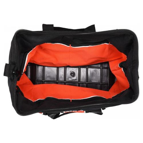 YATO Szerszámtáska 15 zsebes Nagy, tágas szerszámtáska, mely technikai 600 D anyagból készült, vízálló aljú. Erős, rugalmas anyagból készült, mely polipropilén varratokon és a fő záron alapul, megerősített változatban, nehéz terhelésre alkalmazva. A központi fogantyú, tépőzárral rögzítve és az övvel rögzítve, megkönnyíti a szállítást. 15 különböző méretű és célú zsebbel ellátva. A speciális záró típus, fém lemezekkel megerősítve, lehetővé teszi a táska teljes kinyitását és gyors hozzáférést a táska belsejéhez. Villamos szerszámok, kéziszerszámok és tartozékok közvetlen munkahelyre történő átvitelére tervezték. Nehéz terhek, például szerszámok és tartozékok szállítására tervezték a munkahelyen.