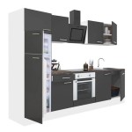 Yorki 270 konyhabútor fehér korpusz,selyemfényű antracit front alsó sütős elemmel felülfagyasztós hűtős szekrénnyel