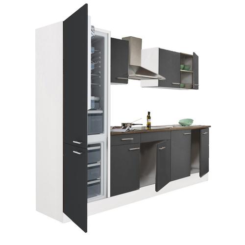Yorki 270 konyhabútor fehér korpusz,selyemfényű antracit fronttal alulfagyasztós hűtős szekrénnyel