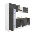 Yorki 270 konyhabútor fehér korpusz,selyemfényű antracit fronttal felülfagyasztós hűtős szekrénnyel