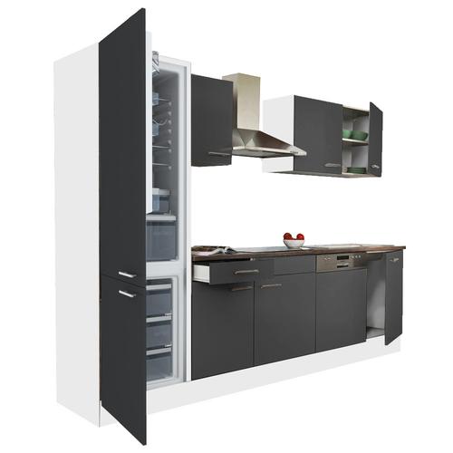 Yorki 280 konyhabútor fehér korpusz,selyemfényű antracit fronttal alulfagyasztós hűtős szekrénnyel