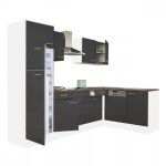 Yorki 280 sarok konyhabútor fehér korpusz,selyemfényű antracit front alsó sütős elemmel felülfagyasztós hűtős szekrénnyel