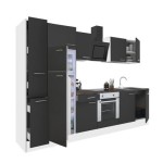 Yorki 300 konyhabútor fehér korpusz,selyemfényű antracit front alsó sütős elemmel felülfagyasztós hűtős szekrénnyel