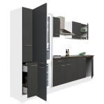 Yorki 300 konyhabútor fehér korpusz,selyemfényű antracit fronttal alulfagyasztós hűtős szekrénnyel
