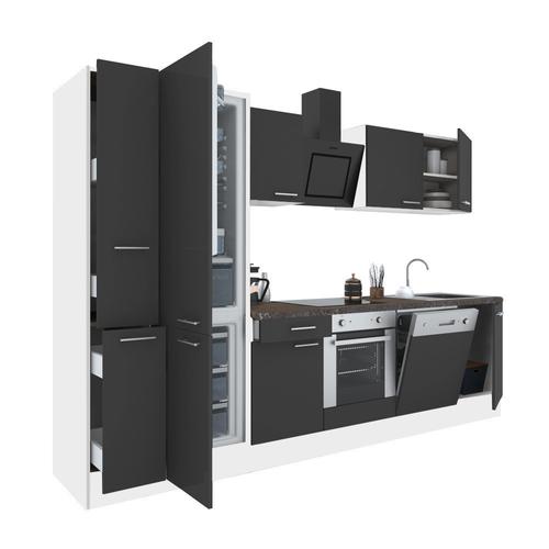 Yorki 310 konyhabútor fehér korpusz,selyemfényű antracit front alsó sütős elemmel alulfagyasztós hűtős szekrénnyel