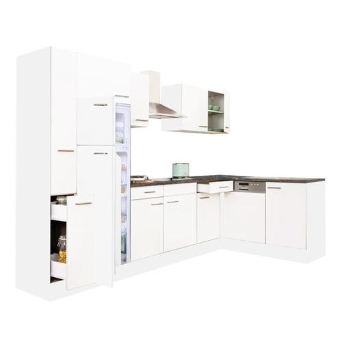Yorki 310 sarok konyhabútor fehér korpusz,selyemfényű fehér fronttal felülfagyasztós hűtős szekrénnyel
