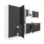 Yorki 370 konyhabútor fehér korpusz,selyemfényű antracit fronttal polcos szekrénnyel és alulfagyasztós hűtős szekrénnyel