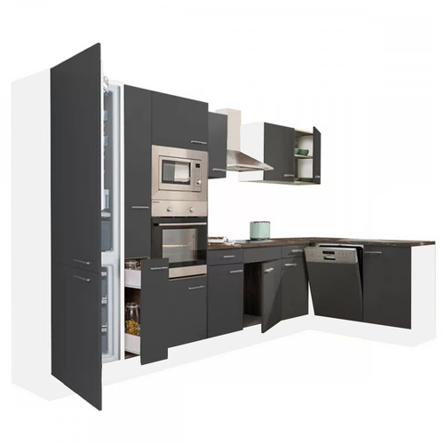 Yorki 370 sarok konyhabútor fehér korpusz,selyemfényű antracit fronttal alulagyasztós hűtős szekrénnyel