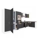 Yorki 430 sarok konyhabútor fehér korpusz,selyemfényű antracit fronttal alulagyasztós hűtős szekrénnyel