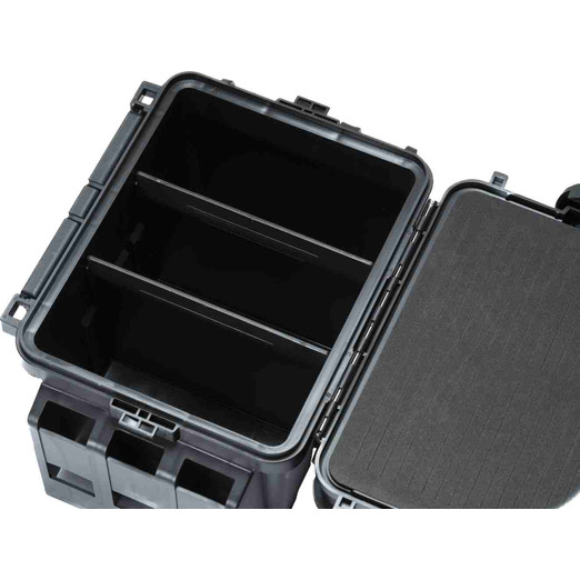RAPTURE AREABOX Tackle System Compact – moduláris pergető szerelékes láda Trout Area és általános műcsalis horgászathoz A Rapture AREABOX Tackle System Compact egy pergetésre tervezett, testreszabható szerelékes láda, ami Trout Area (mikrokanalas) horgászathoz ugyanúgy jó, mint csónakos, belly boat-os vagy kajakos pecához. A lényege: rendezett, gyorsan elérhető tárolás, hogy a csalik és aprócikkek ne keveredjenek össze, és a szerelés ne vigye el a fél horgászatot. Milyen problémát old meg? Nem megy el idő a szerelés miatti keresgéléssel: amikor gyorsan kell kapcsot, forgót, horgot vagy ólomfejet cserélni (pl. csali- vagy mélységváltásnál), a fedél alatti sekély rekeszekből azonnal eléred. Nem kell a nagy rekeszben turkálni, így több idő marad horgászatra. Nem keverednek össze a mikrokanalak: a vágott betét külön tartja a kanalakat, így átlátható marad a készlet. Gyorsabb a súly- és színváltás, és szállítás közben kevésbé verik le egymást, nem sérülnek. Nyitva stabil marad, nem billeg és nem csukódik rád: a kihajtható fogantyú nyitott állapotban kitámasztja a fedelet, ezért a doboz használat közben is stabil. Parton, stégen vagy csónakban is kapsz egy biztos felületet kötéshez, horogcseréhez és szerelék rendezéséhez. Fő előnyök Rendkívül erős műanyag ház: ütésálló, strapabíró, napi használatra tervezve. Két szintű tárolás, jól tagolható rekeszekkel: Mély alsó tároló 2 db merev osztóval Sekély rekesz a fedél alatt 6 db merev osztóval Mikrokanalakhoz való betét: a kanalak rendezett tárolásához, gyors váltásokhoz. Oldalsó rögzítőhelyek kiegészítőknek: például bottartó jellegű kiegészítőhöz. Kétoldalas bővíthetőség: a külön kapható bővítő elem mindkét oldalra felszerelhető. Állítható vállpánt: kényelmes szállítás, ha sokat mozogsz a vízparton. Méret: 31,5 (szélesség) × 23 (mélység) × 24 (magasság) cm