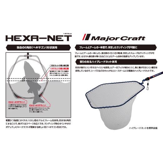A Major Craft Hexa Net merítőfej egy hatszögletű modell. Kiváló minőségű, mely tartós és könnyű anyagból készült. Alakja könnyű használatot biztosít, és hatékonyságot a halak megszákolásában.