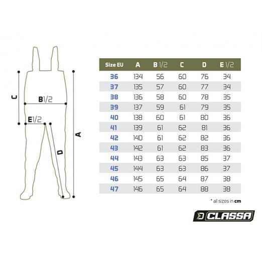 A Delphin CLASSA egy kényelmes és megbízható gázlónadrág, ami ráadásul kedvező árral is párosul. Remek tulajdonságok és jól kidolgozott részletek jellemzik, mint például a kiváló varratok és anyagok közötti illesztések. A kiválasztott anyag kiemelkedően kis súlya, rugalmassága és abszolút vízállósága teszi egyedivé. Ezeknek a paramétereknek köszönhetően még fokozott aktivitás mellett is kényelmesen fogja érezni magát a CLASSA gázlónadrágban. A hagyományos állítható vállpántok mellett ez a modell levehető övvel is rendelkezik, amely lehetővé teszi, hogy még jobban a horgász testformájához lehessen igazítani. A megfeszített öv másik nagy előnye, hogy egy véletlen vízbeesés esetén, kizárja annak lehetőségét, hogy a víz gyorsan bejusson a gázlónadrágba. A tartós és stabil talppal rendelkező gumicsizma lehetővé teszi a kényelmes gázolást különféle körülmények között. A csizma a könnyebb levétel érdekében sarokkiemelkedést is tartalmaz. Összetétel: taslon / PVC.