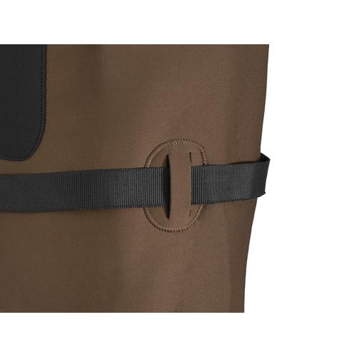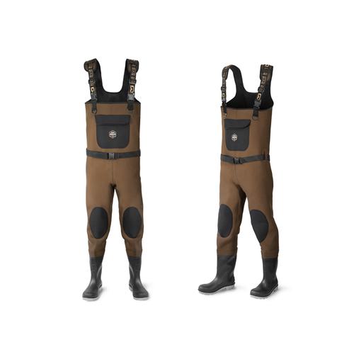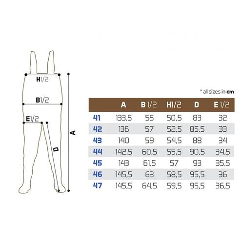 A téli horgászatok során a meleg ruházatra különös figyelmet kell fordítani. A Delphin ORAVA neoprén gázlócsizma gondoskodik erről. Elegáns dizájn és csúcsminőségű gyártási technológia jellemzi, amely során minden öltés és varrás precízen készül a vízszivárgás megelőzése érdekében. Barna színének köszönhetően a halnyálka és egyéb foltok nem lesznek annyira láthatóak a felületén. Az elülső klasszikus neoprén zsebben apró dolgok tárolhatók, mint például a horgászengedélyünk. Nem kell félni a letérdeléstől sem, hiszen a térdrészeken a csizma dupla neoprén réteggel van megerősítve. Az állítható vállpántok neoprén béléssel vannak ellátva a nagyobb kényelem érdekében az egésznapos horgászat során. A vállpántok alatt két műanyag gyűrű található, amelyeken különféle kiegészítők, például mérőszalag vagy csipesz tárolható rugalmas szalagokon. A csomag tartalmaz egy gázlóövet is, amely megakadályozza, hogy a víz bejusson a csizmába, ha megcsúszna vagy elesne. A csizmarész tartós és stabil talppal rendelkezik, amely képes ellenállni a legkeményebb körülményeknek is. Neoprén talpbetéttel vannak bélelve, hogy jobban védje lábunkat a hidegtől. Anyaga: neoprén/PVC Neoprén anyagvastagság: 4 mm