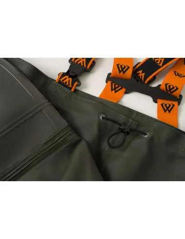 A mellescsizmák-and-nbsp,kiváló minőségű megerősített poliészterből készültek. További jellemzőjük egy zseb a dokumentumok számára, valamint megerősített térdrész. A csizmák talpa barázdált, ami biztosítja a stabilitást még csúszós felületeken is.