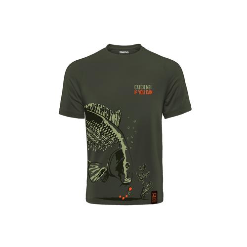A Catch me horgászpólók második generációja teljesen megújult és egyedi színvilággal rendelkezik. A ponty dizájnt felvonultató CATCH ME IF YOU CAN sorozat nem csak a horgászszekrények kiemelkedő darabja. A ponty motívum körbeveszi a törzs alsó részét, vázlatként vagy festményként jelenik meg, miközben minden lényeges részletet megtart. A hal épp egy maroknyi bojlit közelít meg – ez pontosan az a pillanatban, amire a horgászok várnak. A póló sötétzöld színben készül, feltűnő narancssárga és világoszöld grafikával. A kiválasztott szövet kiváló minőségű, akárcsak a használt nyomat. Ha a CATCH ME IF YOU CAN ruházatban van, mindenki tudni fogja, hogy kivel van dolga! Széles méretválasztékban kapható, hogy mindenki megtalálja a számára legmegfelelőbbet. Technikai adatok: Anyagösszetétel: 100% pamut