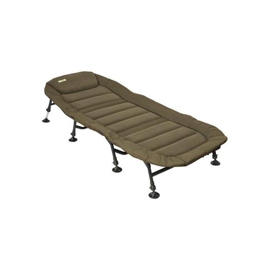 A több napos horgásztúrákon kétségtelenül fontos szempont a kényelem. A Marshal VIP horgász ággyal megtapasztalhatjuk az igazi vízparti kényelmet. Az extra erősítésekkel készült ágy a nagytermetű horgászok elvárásainak is megfelel. Négy pár, vagyis összesen 8 kihajtható és rögzíthető láb gondoskodik az ágy stabilitásáról és teherbírásáról. Az egyenként állítható lábak segítségével könnyen a terepviszonyokhoz tudjuk állítani a lábak magasságát, a nagyméretű önbeálló tappancsok pedig még sáros talajon is stabilan megállnak. A tartós anyagból készült fekvőfelület kényelmesen párnázott, amely a keretnél extra borítást kapott, a fejrész külön is párnázott. Ez mind különösen fontos, hiszen a hideg éjszakákon jelentősen csökkenthetjük az alulról történő felfázás esélyét. A lábak az egyenetlen talajon való elhelyezéskor szintezésre, és nem a szék vagy ágy ülő illetve fekvő magasság emelésére szolgálnak. Ebben az esetben a kihúzott lábak miatt a terhelhetőség csökken.
