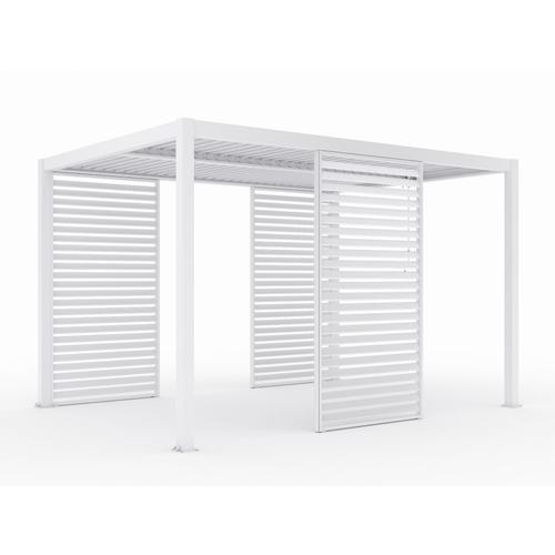 Oldalpanel pergolához – 4 méteres falhoz, 100% alumíniuma kerti pergolához való mozgatható redőnypanel lehetővé teszi a szerkezet bármilyen felépítését100%-ban alumíniumból készült , ami a LightImpact technológiának köszönhetően tartósságát jelentiAz állítható redőnypanelek szabadon nyithatók és zárhatók , így az Ön preferenciáira szabott szerkezet jön létreA pergola egyik falára 3 panel szerelhető , ami megkönnyíti a szabad konfigurálásta panel alumíniumból készült, amelyet fokozott korrózióállóság jellemez , ami hosszabb élettartamot jelentMozgatható oldalfal kerti pergola építéséhezA mozgatható árnyékolólap praktikus megoldás pergola építésére. Az alumíniumból készült falat fokozottan ellenáll a változó időjárási viszonyoknak, így tökéletes kültéri használatra. A pergola falára több panel felszerelésével a teljes szerkezet optimálisan az Ön igényeihez igazítható. A beállítás lehetővé teszi a helyiségbe jutó nap mennyiségének beállítását. Fehér állítható panelA pergola mozgatható oldalfalának köszönhetően a teljes szerkezet optimálisan a felhasználók igényeihez igazítható. A beállítás lehetővé teszi a relaxációs tér árnyékolásának beállítását az Ön igényei szerint. Az oldalfalak széles elrendezési lehetőséget biztosítanak, és a pergolát még funkcionálisabb megoldássá teszik tetőfedésre, pihenési hellyé a kertben és a teraszon.Részletek:Szélesség: 123 cmMagasság: 218 cmSzín: FehérAnyag: AlumíniumJellemzők: Állítható lamellák