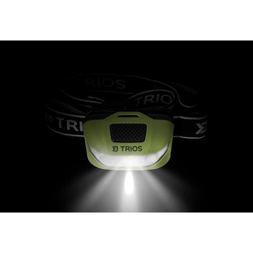 A TRIOS a fejlámpák alaptípusa, amely nemcsak árával szólítja meg. Három LED-et kínál egy zöld műanyag testbe. Ez dönthető, így kényelmesen világíthat szerelék készíttetés közben, vagy a sátorban olvasáskor. A lámpa teste egy rugalmas hevederre van helyezve a Delphin logóval és a TRIOS névvel. A lámpa tetején lévő hatalmas fekete kapcsolóval kapcsol be. Fejlámpa 3 fehér fényerőszinttel. Egy kattintás 70% -on világít 5 órán keresztül, 100% -os teljesítményt második kattintással érjük el és 3,5 óráig bírja, a harmadik kattintás után 30% -on világít, és az elem élettartama 12 óra. Tartsa lenyomva a gombot, hogy aktiválja a piros oldalsó diódákat, amelyek világíthatnak, villoghatnak vagy SOS jelet bocsáthatnak ki. Műszaki paraméterek: Fényforrás: 1db fehér LED, 2db piros LED Teljesítmény: 1W, 60lm Akkumulátor: 2×1.5V, AAA (a csomagolás része) Méret: 57x30x33mm Tömeg: 58g
