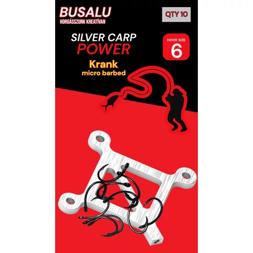 A Silver Carp Power horogválasztás története : Ezelőtt a horog előtt nagyon neves gyártók horgait használtuk. Soha nem éreztük, hogy végre megvan az igazit. Pályafutásunk alatt nem sokszor fordult elő velünk az, hogy nem volt rontott kapásom. Fárasztás közben a szabadon kalimpáló horog rendszeresen beleakad a busa testébe valahová, ami sűrűn a horog kihajlásához, vagy töréséhez vezet. Busalu Slivercarp Power horog tesztelési időszaka: Első peca: Összes kapást busa koronázta. Mondom magamnak: „Ilyen nem fordult elő sűrűn eddig.”Második peca: Összes kapást megint csak busa koronázta. Mondom magamnak: „Na ilyenre sem emlékszem.”Harmadik peca: Összes busa meglett. Mondom magamnak: „Ennyire jó a horog? Létezik?” Aztán jött a 4.5.6.7. peca és hal vesztés nulla. Ugyan azzal a 6-os horoggal. Nem ment ki a hegye és nem hajlott ki a horog.Persze csodák nincsenek és lehet csak nekem van oltári nagy szerencsém, de mindket 100 %-ban meggyőzött ez a horog….