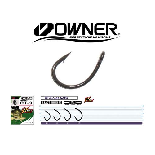 OWNER 53273 CT-t horog az 53263 C-3 típus teflon bevonatos változata. Sötét színű teflonbevonat, erős kialakítás, ívelt szár és enyhén visszatört hegy jellemzi, mely minden nagytestű hal megfogására alkalmassá teszi. Méretei: 2, 4, 6, 8