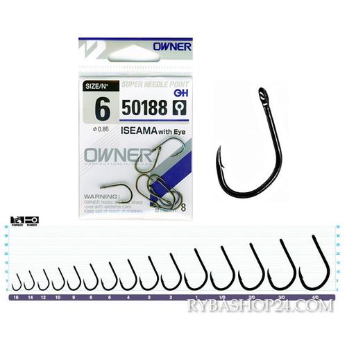 OWNER 50188 ISEAMA füles horog. Erősített kiképzésű, sötét színű, ponty vagy amúr horgászatához ajánlott horogtípus. Nagyobb méretei miatt nem csak általános feeder vagy fenekező, de bojlis horgászathoz is ajánlott. Méretei: 1, 2, 3, 4, 6, 8, 9, 10, 12, 14, 16