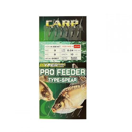 HAYABUSA ISEAMA Carp feeder Spear előkötött feeder szerelék tüskével. Az egyik legjobb minőségű Japán horoggal szerelt előke. A tüskére bojlit, pelletet, kukoricát tűzhetünk fel. Az előke 10cm hosszú így method feeder horgászathoz is kiváló. 3 horog méretben rendelhető, 8-as 10-es 12-es, egy csomagban 6 db előke van.>