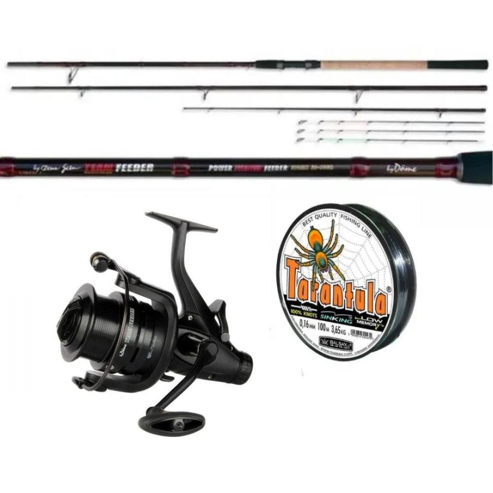 By Döme feeder szett Döme Gábor nevét sokan ismerhetitek hisz régen benne van már a horgász bizniszben. Az ő nevével -and-quot,fémjelzett-and-quot, termékekből raktunk össze nektek egy szettre valót. Sok banda utálja az interjúztatók első kérdését: -Honnan a név?- Mi viszont imádjuk. Döme Gábor régi motoros a szakmában. Már ha a motorja a horgászbotja. Az ő nevének égisze alatt összeraktuk a legdömésebb Döme feeder szettet! A bot kapásból (értitek. KAPÁSBÓL.) a By Döme Team-and-nbsp,Feeder Power Fighter Feeder 360 H 30-100gr /1842-361/. E horgászbot pedig a Carp fighter botok utódja, azoknak minden jó tulajdonságával. A megbízhatóság és a karakterisztika nagyon döme lesz. Legyen a szótárunkban a döme most a kiváló szinonimája! A bot adatai aláírják e kiválóságot: a hossza 3,60 m, dobósúlya pedig 30-100g. SIC típusú gyűrűje mellett carbon anyaga is ráerősít arra, hogy ezt a szettet szinte kötelező lesz kipróbálni. A nyélborítás parafa, a tagok száma pedig 3+3 db. A bot súlya 290 g. A szett része az orsó, ami szintén nagyon Döme: by Döme TF Carpfighter Pro 6000. Ez egy tipikusan feeder horgászatra kifejlesztett orsó, így jól bírja a hétköznapi igénybevételeket. Az orsódob anyaga sekély, lekerekített alumínium, így a távolság is nő, ráadásul a zsinór is gyorsan pereg. Orsónk nyeletőfékes orsó, így minden horgász megtalálja benne saját igényeit. -and-nbsp,Orsónk adatai a következők: a csapágyszám 3 + 1, LCS nyeletőfékrendszere mellett az áttétel 4,6:1. A forgácsolt fém hajtókar mellett a dupla fém zsinórklipsz teszi még erősebbé és még minőségibbé termékünket. Orsónk csapágyazott, zsinórvezető görgővel, erősített felkapókarral, S-Curve zsinórfektető rendszerrel és Grafit-Hybrid orsótesttel is rendelkezik. A zsinórkapacitás 0,20/215,0,25/140 mm/m. Emellett meg kell még említenünk végtelen visszaforgásgátlóját! A damilról még pár szót: damilunk Haldorádó Blue Feeder 0,20mm/300m – 5,65 kg /HDBFE-20/. A Haldorádó Blue Feeder-and-nbsp,a céltudatos feederhorgászok újabb igényeihez rendkívül jól igazodó, alacsony nyúlással rendelkező monofil főzsinór. Így kell körbevenni az igény alakját damillal! Damilunk az egyik legmodernebb gyártástechnológiával készült, amelynek köszönhetően strapabíró, magas szakítószilárdsági értékkel rendelkező, jól süllyedő zsinór az eredmény, amelyről minden horgász álmodik. De Ön nem! Önnek ez az álom az új valóság! A színek mind nappal, mind éjjel jól láthatók, akkor is, ha dobásról, és akkor is, ha halfárasztásról van szó. A hosszú élettartamért a kopás- és UV-álló bevonat felel! Ugye, hogy ez mennyire Döme? Válaszd BY DÖME FEEDER SZETTünket, hogy Te is megismerd Döme kiválóságát! Bot:-and-nbsp,By Döme Team-and-nbsp,Feeder Power Fighter Feeder 360 H 30-100gr /1842-361/ Ez a bot a méltán elhíresül Carp fighter botok utódja. Mind megbízhatóságban mind karakterisztikában meg lesz elégedve vele a normál és a method technikát használó horgász. Hossz (m):3,60 Dobósúly:30-100g Anyag:Carbon Gyűrű típus:SIC Nyélborítás:parafa Tagok száma (db):3+3 Súly:290g By Döme TF Carpfighter Pro 6000 nyeletőfékes orsó Ez a típus a palettánk egyik legnépszerűbb, legnagyobb darabszámban értékesített orsójának, a Carp Fighter LCS-nek a továbbfejlesztett utódja. Megjelenését tekintve letisztult, igényes kivitel jellemzi, elegáns fekete dizájnnal. Külseje a legnevesebb orsógyártók legmívesebb termékeire emlékeztet, miközben ezek a modellek a By Döme TEAM FEEDER orsócsalád legkedvezőbb áru alap alternatívái. A megújult külső mellett, az alábbi elemek változtak a korábbi modellekhez képest: – Precízebben állítható első főfék rendszer, illetve hátsó nyeletőfék, melyek egyaránt 100%-osan por- és cseppállóak. – Megerősített, masszív tengely, ház és rotor, amely még strapabíróbbá teszi az orsót, kiegyenlített, sima futást biztosítva. – A vékony acéldrót felkapókart egy erősített, cső felkapókarra cseréltük. – A hajtókart, a hajtókar végét és az orsótestben található hajtókar-rögzítőcsavart is újra cseréltük. Nagyméretű, ergonomikus hajtókar fogantyút kapott. – Új kialakítású, szélesebb dob, távdobó kilépő éllel. – A csapágyak száma (3+1) nem változott, de ezek minősége is egy lényegesen magasabb szintet üt meg. Az orsó illesztése és ezen keresztül a használati értéke is lényegesen jobb lett. A mindennapos feederhorgászatokhoz, amatőr és haladó horgászoknak egyaránt! A mindennapok kőkemény harcosa. Így a legtöbbek által használt 3,3, 3,6, 3,9 méteres botokhoz ideális választás. A család a legkedveltebb 3 különböző méretben kerül forgalomba Fékrendszer: Elsőfék + hátsó nyeletőfék Csapágy: 3+1 Áttétel: 4.6:1 Orsóház: Grafit-hybrid Dob: Alumínium (távdobó) Végtelen visszaforgásgátló Anti-twist rendszer Dupla fém zsinórklipsz S-Curve zsinórfektető rendszer Zsinórbehúzás: 62 mm dobátmérő, 86 cm / fordulat Zsinórkapacítás: 0.25mm/145m Tömeg: 460 g Damil:-and-nbsp,Balsax Tarantula 0,20mm/300m A Tarantula új molekuláris szerkezete jó nyúlási képesség mellett nagy húzószilárdságot adott a zsinórnak. Ezek a -pókháló–szerű képességek kellő bizalmat adnak nagy halak horgászatához. A Tarantula kiemelkedik a többi zsinór közül, soha nem kell aggódnod, hogy pont a nagy hal fog szakadás miatt elmenni a horgodról. A Tarantula nyúlási képessége megvéd a fárasztás közbeni kirohanásoktól. Az új anyagtechnológiának köszönhetően pedig a zsinór teljesen kopásálló és nem rojtosodik ki. A Tarantulá-t így sokkal hosszabb ideig tudod használni, mint egy átlagos damilt. Mindezeken túl pedig a rejtőzködő sötét