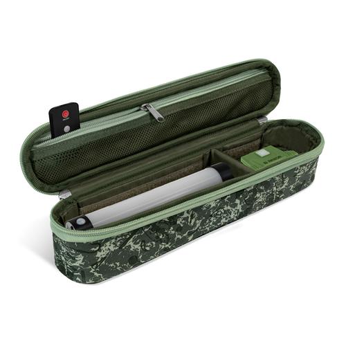 A Delphin SPACE egy exkluzív táska és hátizsák széria a Delphin cégtől. Magas gyártási minőség, erős cipzárak, és egyedi C2G terepszínű dizájn jellemzi őket. Ha nem találj a helyét a lámpáinak, mint például a fejlámpáknak vagy tábori lámpáknak, akkor szívességet tesz majd magánk, ha megvásárolja a Delphin Light SPACE C2G táskát. Ez egy nagyon hasznos táska megerősített oldalfalakkal és alsó résszel, ami maximális biztonságot nyújt a lámpái számára mindenféle károsodás ellen és megóvja őket a véletlen bekapcsolódástól is. A táska belső tere tetszés szerint variálható a kivehető tépőzáras térelválasztóval. Teljesen Önre van bízva, hogyan szeretné használni! A táska bélelt fedelében egy praktikus cipzározható zseb található, amelyben kábeleket, akkumulátorokat vagy csatlakozókat tárolhat. Technikai információk: Külső méretek: 35x8x7 cm Belső zseb méretei: 32×6 cm A Delphin által szabadalmaztatott stílusos terepszínnek, a C2G-nek, több van a nevében, mint amit a szemünk elsőre lát. A rövidítés jelentése “Second generation of Carpath” azaz a Carpath második generációja, de egyúttal a “Carpath to Green” kifejezést is jelöli, ami arra utal, hogy a Carpath terepszínünk zöld változata. Ennek a terepszínnek egyedi mintázata van. Úgy tűnhet, hogy csupán a zöld szín három különböző árnyalatát tartalmazza, de ha közelebbről megnézzük, akkor ponty sziluetteket, pontyos előke tartozékokat és Delphin logókat is felismerhetünk benne. A C2G-vel valóban egyedi stílust kölcsönözhet horgászfelszerelésének!