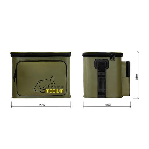 A Delphin NuEVA Simple 35x25x30 cm horgásztáska egy EVA anyagból készült, sokoldalú táska, amelyet különféle horgászfelszerelések, műcsalik vagy csalik tárolására terveztek. Az EVA anyag és a minőségi varratoknak köszönhetően ez a táska teljesen vízálló, így még rossz időjárási körülmények között is tökéletes védelmet nyújt a belsejében tárolt felszerelés számára. Ráadásul nagyon könnyen tisztítható, és nem szívja magába a szagokat. Folyékony attraktorok, dip-ek vagy booster-ek szállítására is alkalmas. Elöl egy cipzáras zseb található, amely extra tárolóhelyet biztosít. A NuEVA sorozata kifinomult színekben készül, amit ponty logók tesznek teljessé, ez a részlet pedig minden lelkes pontyhorgász számára kellemes látványt jelent. Állítható vállpánttal van ellátva, hogy praktikusabb legyen a szállítás. Méretei: 35x25x30cmElső zseb mérete: 30x20x6cm