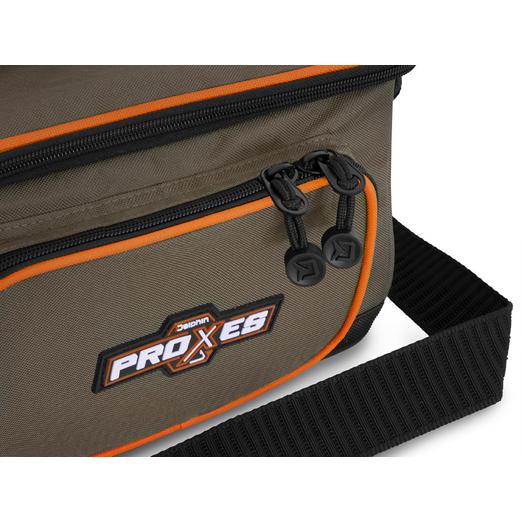 A Delphin PROXES Easy L egy kompakt és praktikus táska a pergető horgászat, feeder vagy úszós horgászat minden rajongójának. Az Easy L és a PROXES sorozat többi terméke mind jól elkészített, kiváló minőségű termékek méltányos áron. A PROXES sorozat színkombinációja elegáns megjelenést kínál, amely illeszkedik az Ön környezetéhez. A narancssárga szalagok szép kontrasztot és jobb láthatóságot képviselnek, a sötétben, illetve ha ködös az idő. A táska minőségi, tartós anyagokból készül. Ráadásul az alsó részt gumiréteg védi, hogy távol tartsa a talaj nedvességét. A fő tároló részben egy átlátszó műanyag doboz található, állítható rekeszekkel, így mindig tudni fogja, mi van benne. Ez a doboz alkalmas műcsalik, feeder kosarak, vagy egyéb apró kiegészítők tárolására. A fő tárolóhoz való hozzáférést minőségi Delphin logós húzókával ellátott cipzár biztosítja. A fedél belső részén egy hálós cipzáras zseb található, ahol apró tárgyak vagy dokumentumok tárolhatók. Ezenkívül a táskának van egy másik tárolórésze is egy cipzáras zseb formájában az elején. Mint minden termékünknél, ennél a táskánál is a részletek döntő fontosságúak. Ez az oka annak, hogy az Easy L-nek mindkét oldalán hurkok találhatók csipeszek vagy fogók tárolására. A könnyű szállítás érdekében a fedélen textil fogantyú és állítható párnázott vállpánt található. Technikai információ:Külső méret: 27x19x16 cmFő tároló mérete: 27x16x16 cmElülső zseb mérete: 16x11x3 cmTároló mérete: 23x12x4 cm
