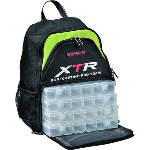A Trabucco szakértői csapata ezen a területen egyedülálló Európában, így természetes, hogy a vállalat folyamatosan beruház a termékfejlesztésbe, amit ennek a táska családnak a bevezetése is bizonyít. Az XTR táskák meglehetősen gazdag funkciókkal rendelkeznek, ugyanakkor nagyon igényes design jellemzi őket, a fekete és chartreuse kombinációval, amely erős jelzést ad a piacnak. A táskák, hátizsákok és botzsákok tartós – 1200 denier vízállóságú – mosható anyagból készülnek.A hozzá adott sok rekesszel ellátott műanyag dobozok ehetővé teszi a belső tér teljes kihasználását az összes tartozék rendezett tárolását. A speciális párnázások, a merev fenék, a fogantyúk és a vállszíjak, a zippzárak és a varrások nagy gondossággal és precizitással készülnek.