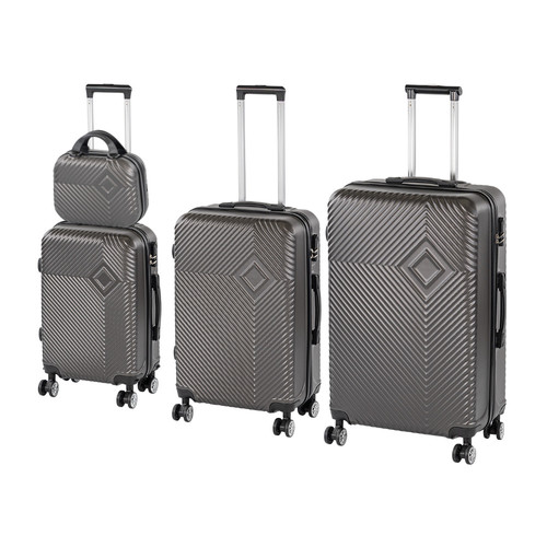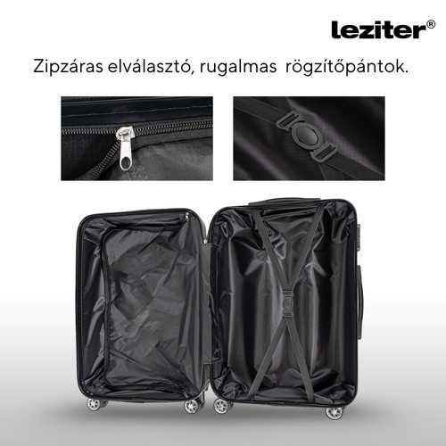 TraveLux Pro XXIV gurulós bőröndszett neszesszerrel – Teljes csomagolási szabadság, stílusos egységbenTípus: 4 részes keményfedeles bőröndszettTartalom és méretek: Neszeszer: 23 × 30 × 14 cm | 11 liter | 0,77 kg Kabinbőrönd: 55 × 40 × 20 cm | 38 liter | 2,6 kg Közepes bőrönd: 68 × 45 × 25 cm | 60 liter | 2,65 kg Nagy bőrönd: 76 × 50 × 29 cm | 100 liter | 3,3 kgAnyag: Könnyű, karcálló ABS műanyagKerekek: Kabin, közepes és nagy bőrönd – 4 db dupla kerék, 360°-ban forgathatóHúzószerkezet: Fém teleszkópos kar (kabin, közepes és nagy bőrönd)Fogantyúk: Ergonomikus felső (neszesszer), felső és oldalsó (kabin, közepes, nagy)Zár: Beépített számzár (kabin, közepes, nagy), cipzáras záródás (neszesszer)Belső kialakítás: Cipzáras elválasztó, rugalmas rögzítőpánt mind a 4 darabbanRögzítés: Kézi bőrönd és neszesszer hátoldali pánttal a bőröndhúzókra rögzíthetőSzín: Modern, egységes szürkeKompatibilitás: Teljes TraveLux Pro család, Axen hátizsák kompatibilisNégy méret – végtelen lehetőségA TraveLux Pro XXIV szett tökéletes választás bármekkora utazáshoz:A neszeszer ideális választás rövidebb utazásokhoz, napi használatra vagy akár kézitáskaként is.A kabinbőrönd ideális rövidebb repülőutakra, kézipoggyászként.A közepes méretű bőrönd tökéletes 2-4 napos utazásokhoz.A nagy bőrönd deális választás hosszabb nyaralásokhoz, családi utazásokhoz vagy külföldi tartózkodáshoz. Megbízható védelem és mozgékonyságA strapabíró ABS anyag karcálló és ütésálló, így megvédi a csomagjaidat utazás közben. A 360°-ban forgó dupla kerekek és a teleszkópos húzószerkezet gördülékeny haladást biztosít, akár repülőtéren, akár városi közlekedés során.Rendszerezettség útközben isMind a négy darab jól átgondolt belső kialakítással rendelkezik – a cipzáras elválasztók és rugalmas rögzítőpántok segítenek a ruhák, eszközök, piperekészlet biztonságos rendszerezésében. A neszesszer rögzíthető a nagyobb bőröndökre, így kezeid szabadon maradnak.Stílusos egység, maximális funkcionalitásA szett minden darabja harmonizál egymással színben, formában és praktikum tekintetében. Akár külön, akár együtt használod őket, megjelenésed rendezett, elegáns és átgondolt marad. Kompatibilisek a TraveLux Pro család további tagjaival, és akár egy Axen laptop hátizsákkal is kiegészíthetők.Kinek ajánljuk a TraveLux Pro XXIV szettet?Családos utazóknak, akiknek eltérő csomagolási igényeik vannakÜzleti utazóknak, akik a praktikumot és megjelenést is szem előtt tartjákRepülővel utazóknak, akik a kézi, kabin és feladott poggyászt is kihasználjákMindenkinek, aki szeret rendszerezetten, kompromisszumok nélkül csomagolniÁllítsd össze a tökéletes utazószettedA TraveLux Pro XXIV szett teljes szabadságot ad a csomagolásban. Használd együtt vagy külön, egészítsd ki további elemekkel, és indulj útnak úgy, hogy minden kéznél van – stílusosan és logikusan rendszerez.Melyik légitársasághoz felel meg a TraveLux Pro bőrönd?LégitársaságIngyenes kézipoggyász (max. méret)Nagyobb kézipoggyász (Priority vagy extra díj)Feladott poggyász max. méretLeziter bőrönd (76×50×29 cm)Közepes bőrönd (68×45×25 cm)Kabin bőrönd (55×40×20 cm)Ryanair40×20×25 cm55×40×20 cm (Priority)80×120×120 cmKézi poggyásznak: nem;Feladott poggyásznak: igenKézi poggyásznak: nem;Feladott poggyásznak: igenKézi poggyásznak kerekek nélkül: igenWizz Air40×30×20 cm55×40×23 cm (WIZZ Priority)149×119×171 cmKézi poggyásznak: nem;Feladott poggyásznak: igenKézi poggyásznak: nem;Feladott poggyásznak: igenKézi poggyásznak kerekek nélkül: igeneasyJet45×36×20 cm56×45×25 cm (feláras opció)Max. összméret: 275 cmKézi poggyásznak: nem;Feladott poggyásznak: igenKézi poggyásznak: nem;Feladott poggyásznak: igenKézi poggyásznak kerekek nélkül: igenEurowings40×30×25 cm55×40×23 cm (feláras opció)Max. összméret: 158 cmKézi poggyásznak: nem;Feladott poggyásznak: igenKézi poggyásznak: nem;Feladott poggyásznak: igenKézi poggyásznak kerekek nélkül: igen