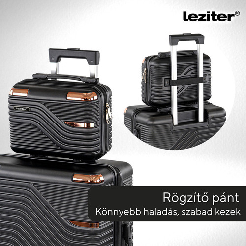 TraveLux Urban utazó neszeszer keményfedeles – 23 × 30 × 14 cm lazacrózsaszín Típus: Keményfedeles neszeszer Méretek: 23 × 30 × 14 cm Űrtartalom: 10 liter Súly: 0,6 kg Anyag: Kemény, masszív ABS műanyag – könnyű, karcálló, strapabíró Fogantyúk: Ergonomikus felső fogantyú Zár: Cipzáras záródás Belső kialakítás: Cipzáras elválasztó, rugalmas rögzítőpántok Rögzítés: Hátoldali pánt teleszkópos húzószárra Szín: Stílusos lazacrózsaszín kivitel Kompatibilitás: Travelux Urban család további tagjai (kézi bőrönd, kabinbőrönd, közepes és nagy bőrönd) Praktikus utazóbőrönd rövidebb utakra A Leziter TraveLux Urban neszeszer ideális választás rövidebb utazásokhoz, napi használatra vagy akár kézitáskaként is. Kompakt mérete ellenére jól pakolható, 10 literes űrtartalma pedig elegendő helyet biztosít a legfontosabb piperecikkeknek: kozmetikumok, neszesszeres flakonok, elektromos borotva, sminkfelszerelés vagy higiéniai kellékek is könnyedén elférnek benne. A letisztult formájával külön kézben hordva is stílusos, de nagyobb bőröndre rögzítve is maximálisan praktikus. Masszív, karcálló ABS keményfedeles borítás A Leziter TraveLux Urban neszeszer strapabíró, könnyű ABS műanyagból készült, amely ellenáll a külső behatásoknak, nyomásnak és a karcolásoknak is. A keményfedeles kialakítás megbízható védelmet nyújt a benne tárolt eszközöknek – még akkor is, ha sietve pakolsz vagy mozgalmas úton vagy. Praktikus elrendezés és kényelmes szállítás A belső tér cipzáras elválasztóval és rugalmas rögzítőpántokkal van ellátva, így a kisebb tárgyak nem borulnak össze, és mindig minden a helyén marad. A hátoldali pánt segítségével a neszeszer könnyedén rögzíthető egy nagyobb gurulós bőrönd húzószárára – ez különösen előnyös, ha több csomaggal utazol. Szabad kezek, gördülékeny haladás. Kompatibilitás a TraveLux Urban családdal A TraveLux Urban neszeszer tökéletesen illeszkedik a termékcsalád többi eleméhez – a kézi, kabin, közepes és nagy méretű bőröndökhöz is. Az egységes megjelenés és a praktikus rendszerezhetőség megkönnyíti az utazást, különösen, ha fontos számodra a rendezett csomagolás és a stílusos megjelenés. Kinek ajánljuk a Leziter TraveLux Urban neszeszert? A TraveLux Urban neszeszer tökéletes választás: napi használatra, akár irodába vagy edzőterembe repülős utakhoz, ahol szükség van egy külön neszesszerre utazóknak, akik szeretik a rendszerezett csomagolást azoknak, akik kis helyen szeretnék biztonságban tudni a piperecikkeiket mindenki számára, aki a praktikumot és a stílust egyaránt fontosnak tartja Bővítsd ki utazófelszerelésed egységes stílusban A Leziter TraveLux Urban termékcsalád különböző méretű bőröndjei – kézi, kabin, közepes és nagy kivitelben – valamint a hozzá illő neszesszer egymást kiegészítve nyújtanak praktikus megoldást minden utazási helyzetre. Válaszd ki az igényeidhez illő darabokat, és állítsd össze a teljes, összehangolt csomagolási rendszered – elegáns megjelenéssel és logikus rendszerezhetőséggel.