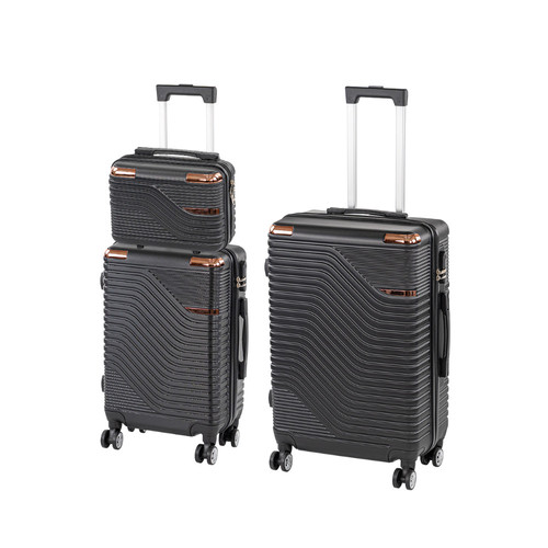 TraveLux Pro XVIII gurulós bőrönd szett – Három méret, egy stílusos rendszer Típus: 3 darabos keményfedeles bőröndszett Tartalom és méretek:– Kézi bőrönd: 28 × 36 × 16 cm | 11 liter | 0,77 kg– Kabin bőrönd: 55 × 40 × 20 cm | 38 liter | 2,6 kg– Közepes bőrönd: 68 × 45 × 25 cm | 60 liter | 2,65 kg Anyag: Könnyű, karcálló, ütésálló ABS műanyag Kerekek: Kabin- és közepes bőrönd: 4 db dupla kerék, 360°-ban forgatható (kabinbőrönd levehető kerekekkel) Húzószerkezet: Fém teleszkópos kar (kabin és közepes bőrönd) Fogantyúk: Ergonomikus felső (kézi), felső és oldalsó (kabin és közepes) Zár: Beépített számzár (kabin és közepes bőrönd), cipzáras záródás (kézi bőrönd) Belső kialakítás: Cipzáras elválasztó és rugalmas rögzítőpánt mindhárom bőröndben Rögzítés: A kézi bőrönd hátoldali pánttal rögzíthető a nagyobb bőröndökhöz Kompatibilitás: Teljes TraveLux Pro család, Axen laptop hátizsák csatlakoztatható Szín: Stílusos fekete kivitel, meleg fényű, rosegold hatású elemekkel Kompakt kézipoggyásztól a közepes utazóbőröndig – mindenre van megoldásod A TraveLux Pro XVIII szett három különböző méretű bőröndöt tartalmaz, így bármilyen hosszúságú útra indulhatsz – legyen szó gyors városi utazásról, hétvégi kiruccanásról vagy néhány napos külföldi programról. A stílus és funkcionalitás itt kéz a kézben jár. Masszív, karcálló ABS keményfedeles borítás Mindhárom bőrönd rendkívül strapabíró ABS műanyagból készült, amely nemcsak könnyű, hanem kiválóan ellenáll a karcolásoknak és az ütődéseknek is. Ideális társ, akár repülőtéri pakolásról, akár autós kirándulásról van szó. Könnyű kezelhetőség 360°-ban forgó kerekekkel A kabin- és közepes bőrönd 360°-ban forgó dupla kerekei garantálják a sima haladást a reptéren vagy a városban. A kézi bőrönd hátoldali pánttal rögzíthető a nagyobb bőröndök húzószárára, így kezeid mindig szabadon maradhatnak – ez különösen fontos rohanós helyzetekben. Átlátható és praktikus belső tér A belső kialakítás minden darabban ugyanazt a logikus elrendezést követi: cipzáras elválasztó és rugalmas rögzítőpántok gondoskodnak arról, hogy a csomagod ne boruljon fel, és minden gyorsan megtalálható legyen – legyen az ruha, technikai eszköz vagy piperecikk. Utazás biztonságban – számzárral vagy cipzárral A kabin- és közepes bőrönd beépített számzárral zárható, így nem kell plusz lakatot magaddal vinni. A kézi bőröndön cipzáras megoldás biztosítja a gyors hozzáférést a leggyakrabban használt eszközökhöz. Kompatibilis és bővíthető rendszer Ez a három darab tökéletesen illeszkedik a TraveLux Pro család többi tagjához – például a nagy bőröndhöz vagy a neszesszerhez. Ha bővülnek az igényeid, elég csak hozzáilleszteni az új darabot – a dizájn és a funkcionalitás továbbra is egységes marad. Kinek ajánljuk a TraveLux Pro XVIII szettet? Utazóknak, akik rendszeresen váltogatják a hosszú hétvégét és a többnapos programokat Repülős utasoknak, akiknek fontos a légitársaság-kompatibilitás Azoknak, akik szeretik a rendszerezett csomagolást, és nem bízzák a véletlenre a pakolást Stílusos megjelenésre vágyóknak – legyen szó üzleti vagy magánútról Mindazoknak, akik hosszú távra terveznek, és egy megbízható, bővíthető utazószettet keresnek Melyik légitársasághoz felel meg a TraveLux Pro bőrönd? Légitársaság Ingyenes kézipoggyász (max. méret) Nagyobb kézipoggyász (Priority vagy extra díj) Feladott poggyász max. méret Közepes bőrönd (68×45×25 cm) Kézi bőrönd (76×50×29 cm) Kabin bőrönd (55×40×20 cm) Ryanair 40 × 20 × 25 cm 55 × 40 × 20 cm (Priority) 80 × 120 × 120 cm Kézi poggyásznak: nem;Feladott poggyásznak: igen Minden jegytípushoz jár 1 kis táska Kézi poggyásznak kerekek nélkül: igen Wizz Air 40 × 30 × 20 cm 55 × 40 × 23 cm (WIZZ Priority) 149 × 119 × 171 cm Kézi poggyásznak: nem;Feladott poggyásznak: igen Ingyenesen felvihető Kézi poggyásznak kerekek nélkül: igen easyJet 45 × 36 × 20 cm 56 × 45 × 25 cm (feláras opció) Max. összméret: 275 cm Kézi poggyásznak: nem;Feladott poggyásznak: igen Ingyenes kézitáska méret alatt van Kézi poggyásznak kerekek nélkül: igen Eurowings 40 × 30 × 25 cm 55 × 40 × 23 cm (feláras opció) Max. összméret: 158 cm Kézi poggyásznak: nem;Feladott poggyásznak: igen Kis kézipoggyásznak számít Kézi poggyásznak kerekek nélkül: igen