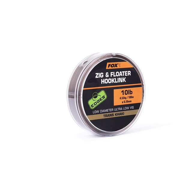 Fox Zig & Floater Hooklink Trans Khaki felszíni zsinór Tökéletes előke anyag felszíni horgászatokhoz vagy Zig-Rig-hez Új, fejlesztett, rendkívül nehezen észrevehető – Trans Khaki szín – Lézer ellenőrzésű alacsony átmérő – Kiváló csomótűrő képesség – Ultra sima felület – Természetes lebegés